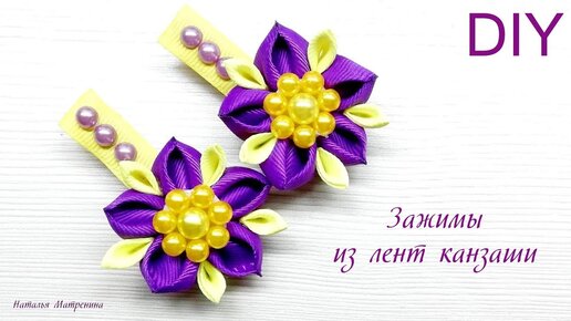 Зажимы из лент с бусинами своими руками