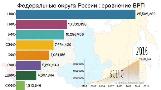 Федеральные округа России.Сравнение ВРП.Валовой региональный продукт.Статистика.Регионы России