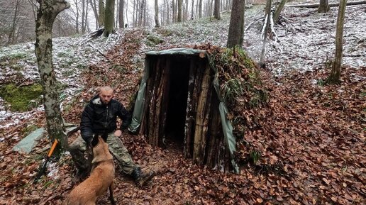 Построил Примитивное Убежище Для Выживания в лесу. Строительство лесной хижины землянки