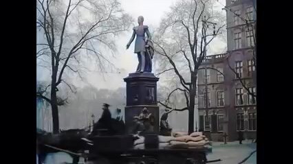 Гаага: тюремные ворота и снос зданий вдоль Хофвейвера в 1925 году, в цвете.