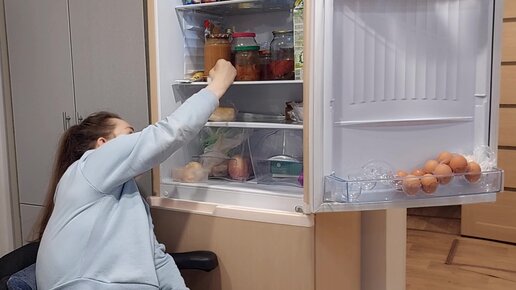 Самодельный "лифт" в холодильнике. Достаю продукты с верхней полки, до которой не дотягиваюсь в инвалидной коляске.
