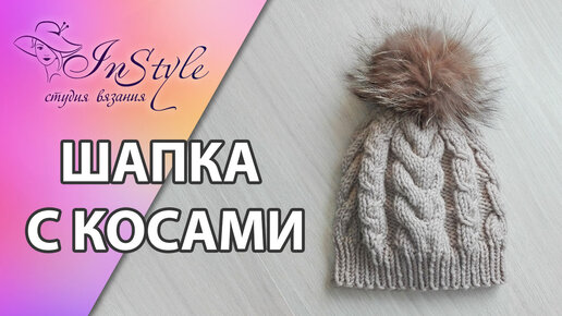 Шапка спицами. Шапка с косами и помпоном. Мастер-класс (How to Knit a Hat)