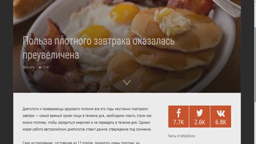 Польза плотного завтрака оказалась преувеличена