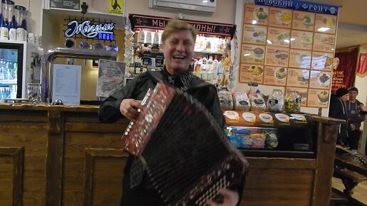 Игорь Шипков (гармонь) импровизирует на гармони на современные песни и поздравляет Алёну с днём рождения в кафе "Дружба" Часть 1