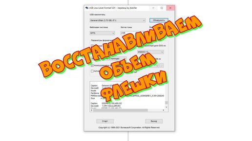 Как восстановить объем флешки. USB Low-Level Format.