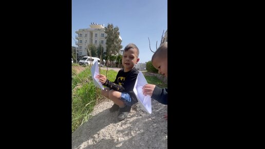 Решили запустить бумажные кораблики в маленькой речке у дома ☺️