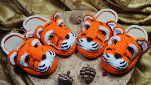 Тапки-Тигры. Тапочки крючком ( 1 часть)