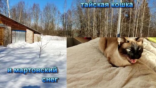 Природа России.Тайская кошка и мартовский снег.Дом в деревне.