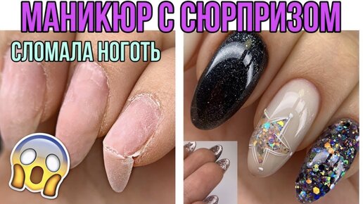 Сломала ноготь 😐 Ноготь висит на гипонихии 😱 Маникюр с сюрпризом