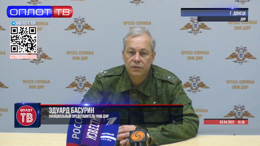 Заявление официального представителя НМ ДНР полковника Э.Басурина по обстановке на 10.30 от 3 апреля