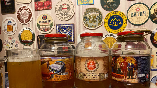 Два пива Советское Барное в стеклянных банках и одно с шишками хмеля!