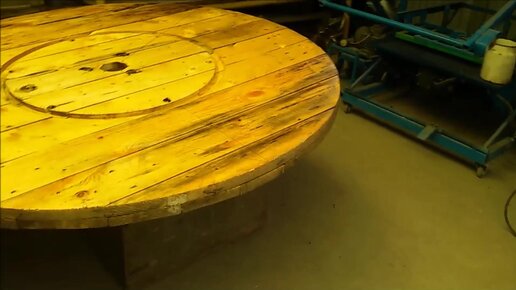 Стол с крутящейся столешницей - из катушки от кабеля.