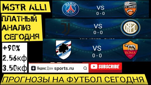 ПАРИЖ СЕН-ЖЕРМЕН VS ЛОРЬЯН/ЮВЕНТУС VS ИНТЕР/САМПДОРИЯ VS РОМА прогнозы на футбол сегодня