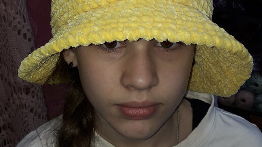 Тёплая панама из плюшевой пряжи