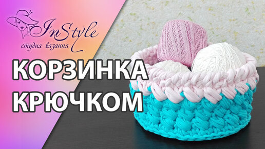 Корзинка крючком из трикотажной пряжи. Мастер-класс (crochet basket)