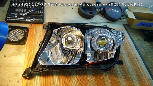Land Cruiser 200 квадробилед Установка двух би светодиодных модулей Optima Premium Professional