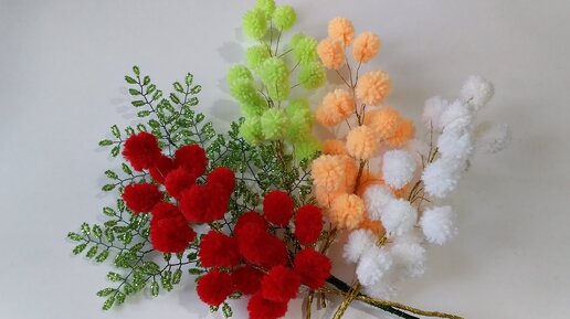 Бисероплетение. Рукоделие. Цветная Мимоза. Декоративные веточки. Мимоза из ниток. Мастер класс.