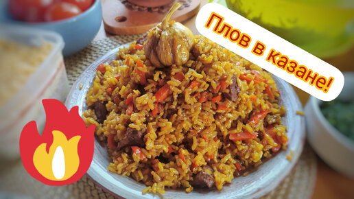 Готовим ароматный плов из говядины в чугунном казане большой компанией
