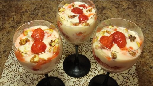 Десерт с ряженкой, бананом и клубникой без желатина/ Очень быстро и вкусно!