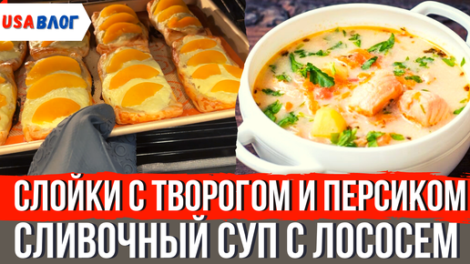 Сливочный суп с лососем и слойки с персиками // Богиня кулинарии в деле // Влог США