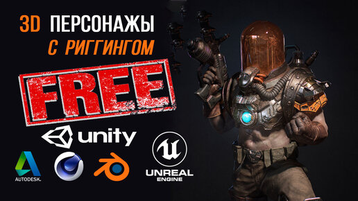 Скачать БЕСПЛАТНО 3D ПЕРСОНАЖЕЙ с риггингом и анимацией для Blender,Cinema 4D,3Ds Max,Maya,UE,Unity