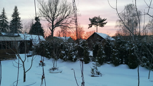 Брусничное небо на даче 3 апреля после снегопада перед отъездом с дачи в Подмосковье. Снежные тучи рассеялись!