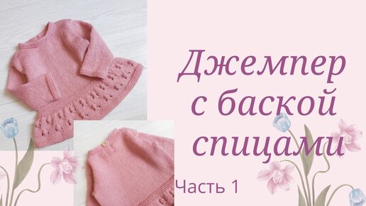 Джемпер с баской связанный по кругу спицами/ для девочки/ 9-12 м /рост 74-80 см/Часть 1