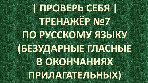 | ПРОВЕРЬ СЕБЯ | ТРЕНАЖЁР № 7 ПО РУССКОМУ ЯЗЫКУ (БЕЗУДАРНЫЕ ГЛАСНЫЕ В ОКОНЧАНИЯХ ПРИЛАГАТЕЛЬНЫХ) /4 КЛАСС/