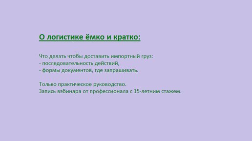 Как доставить груз, не имея знаний и опыта. Автор лекции - Евгения Одинцова.