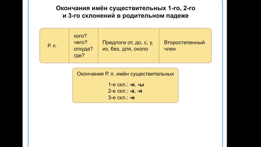 Окончания имен существительных 1-го, 2-го и3-го склонения по падежам.