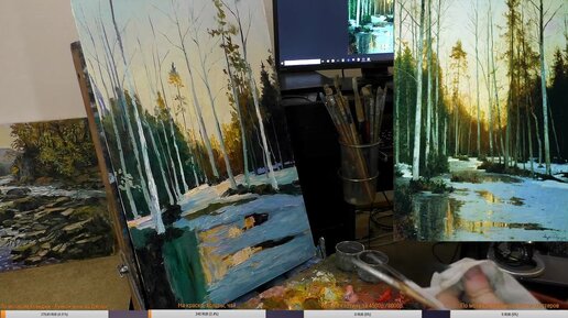 Как написать закат зимой, живопись маслом.