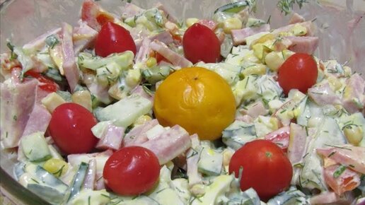 Нежный, легкий, вкусный салат с ветчиной.