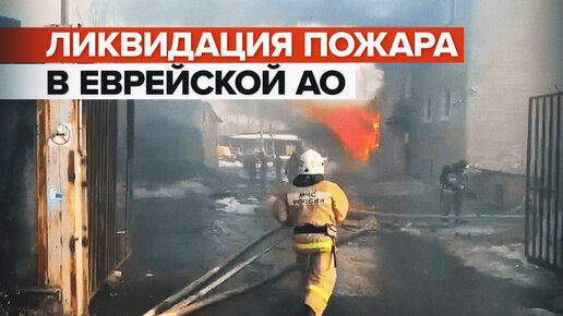 Тушение пожара в деревоперерабатывающем цеху в Еврейской АО