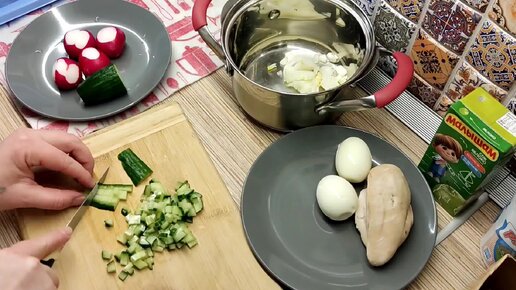 Диетическая окрошка, очень быстро и вкусно