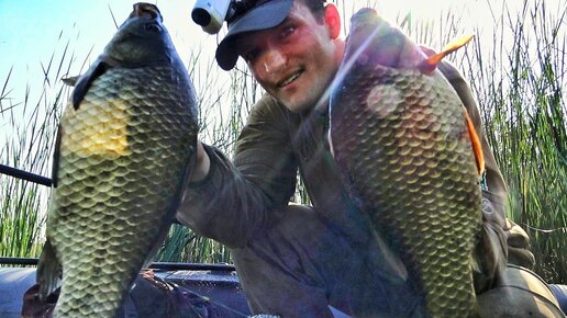 Лапти караси в непролазных дебрях камыша! Рыбалка с лодки на поплавочную удочку