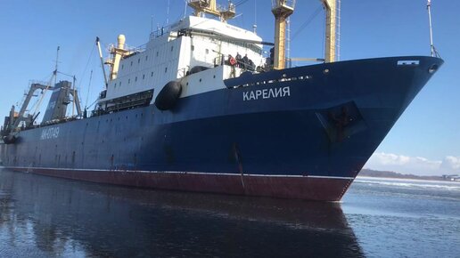 Готовимся к сезону, а тут - мимо такой красавец! Ух! Рыболовный траулер морозильно-консервный, супертраулер. "Карелия".