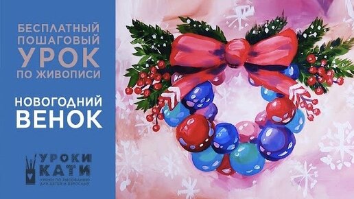 Рисуем Новый год! Как нарисовать рождественский венок гуашью, пошаговый урок для детей и взрослых