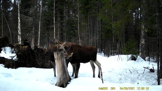 Природа.Лоси на солонце