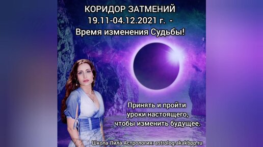 ПРИНЯТЬ И ПРОЙТИ УРОКИ НАСТОЯЩЕГО, ЧТОБЫ ИЗМЕНИТЬ БУДУЩЕЕ. КОРИДОР ЗАТМЕНИЙ 19.11-04.12.2021 г. – ВРЕМЯ ИЗМЕНЕНИЯ СУДЬБЫ!
