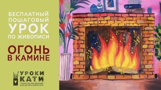 Как нарисовать огонь, как нарисовать камин гуашью, пошаговый урок для детей и взрослых