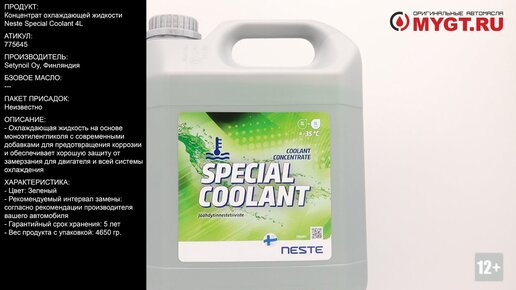 Концентрат охлаждающей жидкости Neste SPECIAL COOLANT 4L 775645 #ANTON_MYGT