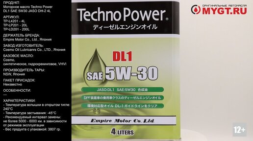 Моторное масло Techno Power DL1 SAE 5W-30 JASO DH-2 4L TP-L4201 #ANTON_MYGT