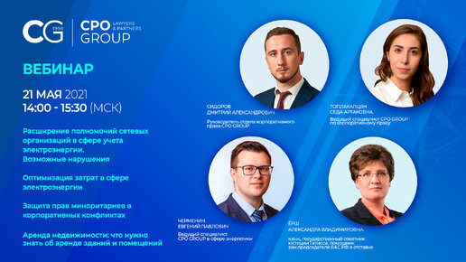 Вебинар Юридической компании ЦПО ГРУПП по корпоративному праву, энергетике и аренде недвижимости.