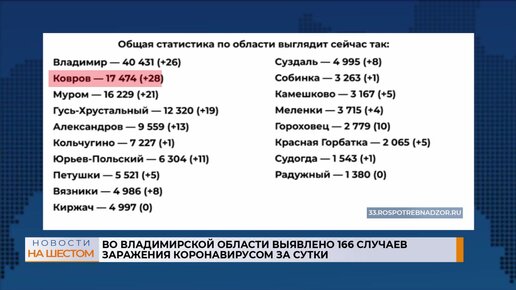 Во Владимирской области выявлено 166 случаев заражения коронавирусом за сутки