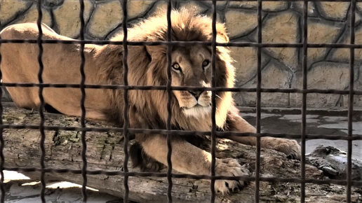 Лев Витя не точит когти, а рвёт бревно конкретно! Victor the lion - he does not sharpen his claws, but tears up a log!