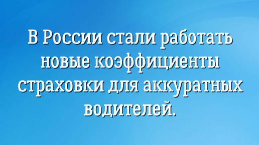 В России стали работать новые коэффициенты страховки для аккуратных водителей.