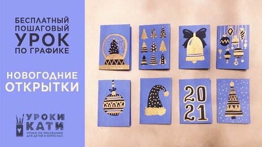 Как сделать новогодние открытки, 8 открыток фломастерами за 20 минут, пошаговый урок для детей