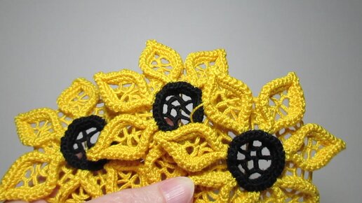 Вязаные крючком подсолнухи для будущего рюкзака готовы
