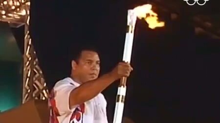 Мухаммед Али зажигает олимпийский огонь на стадионе в Атланте