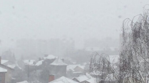 Казань. Снег выпал в апреле. Падает снег целый день